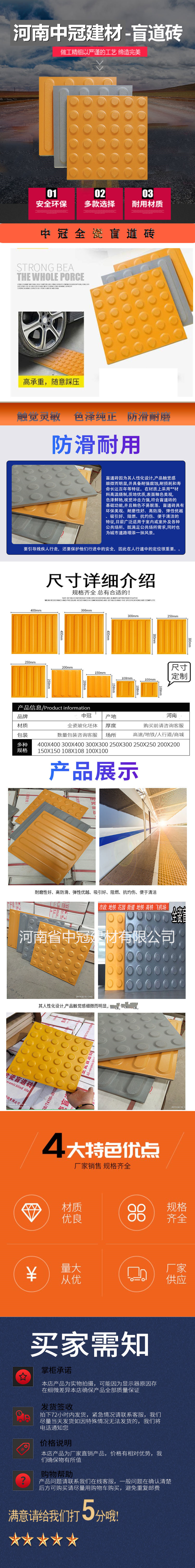 我們的盲道磚是全瓷的,不是塑膠的,也不是水泥,而且尺寸是經(jīng)過修邊的,不要害怕有誤差,厚度也達(dá)標(biāo)的,顏色是不會(huì)掉色脫色的,還有什么不放心的電話咨詢吧!18239167111\18839118777