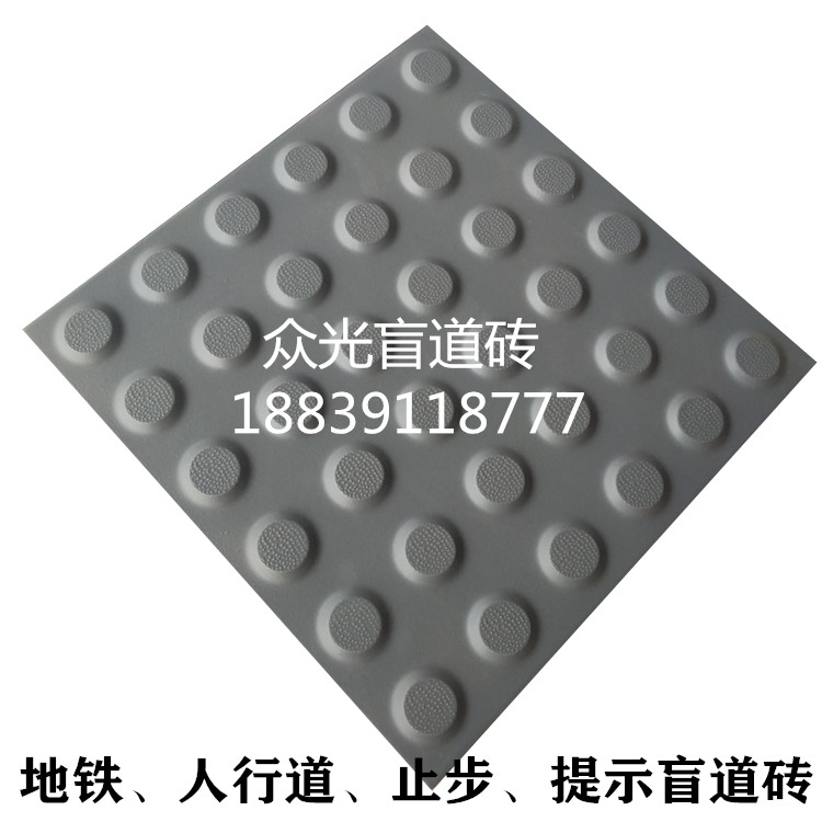盲道磚是為盲人安全提供的行路方便道路設施。盲道磚由三類磚鋪設,一類是條形方向引路磚,引導盲人放心前行,稱為行進盲道磚,或盲道方向引路磚;一類是帶有圓點的提示磚,提示盲人前面有障礙,該轉(zhuǎn)彎了,稱為提示盲道磚,或盲道方位引路磚;還有一類是盲道危險警告引路磚,圓點較大的,是警視前面危險。