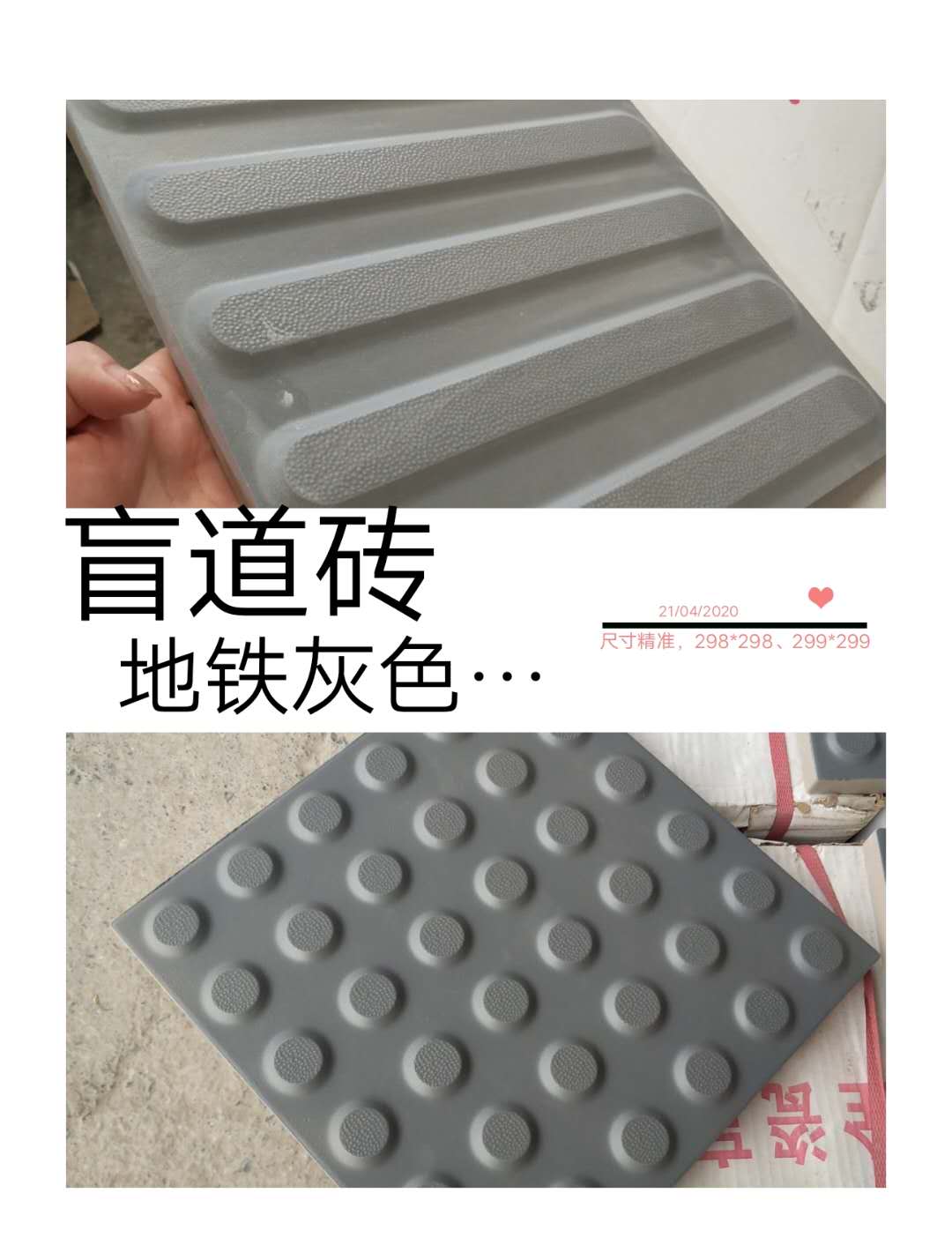 盲道磚顏色:灰色、深灰、黃色(另有通體微晶石出售,盲道磚旁邊鋪的白色安全線)